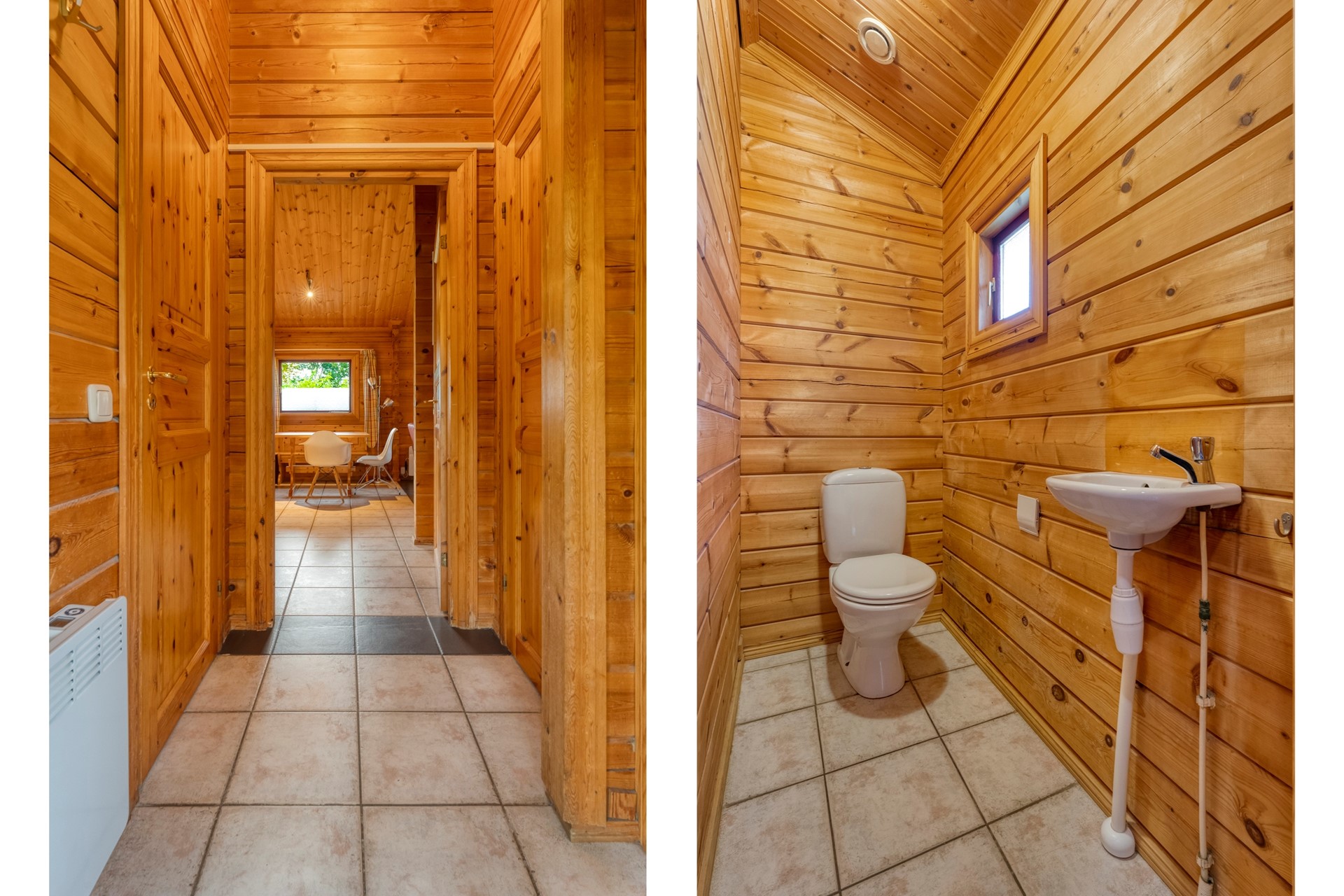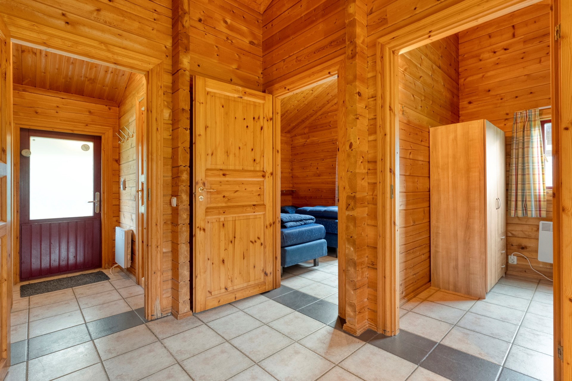 Entree/hal met toilet; Badkamer voorzien van een bad-douche combinatie en een wastafel; Technische ruimte met boiler en wasmachine; Woonkamer met open haard en voorzien van terrasdeuren naar het overdekte terras; Open keuken voorzien van een inductie kookplaat, afzuigkap, magnetron en een vrijstaande vaatwasser; 2 slaapkamers.