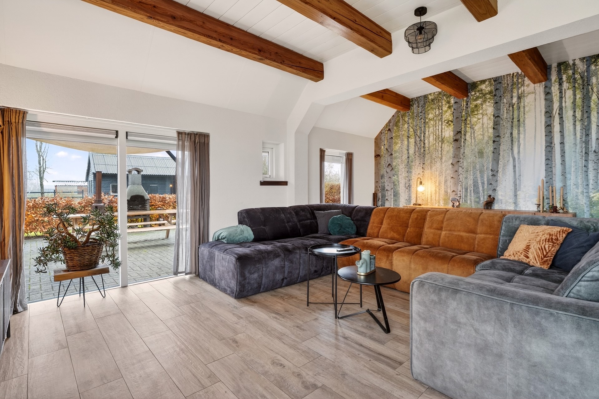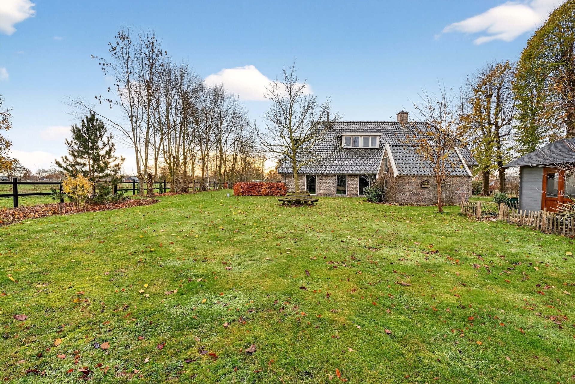Aan de Zuid- en Oostzijde van de woning ligt een riant tuinterras met prachtig uitzicht over de landerijen. Ook is er een eigen moestuin aanwezig.