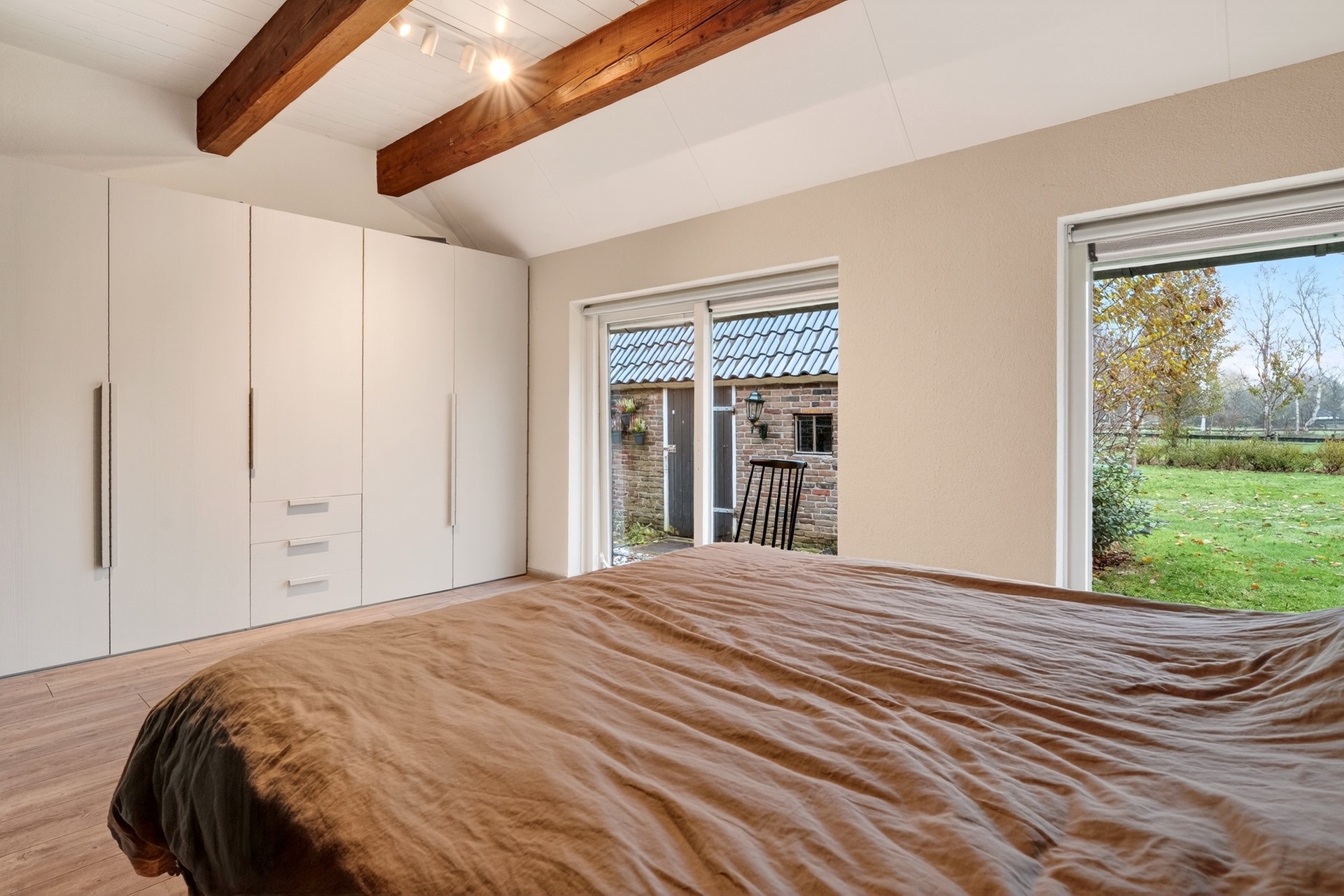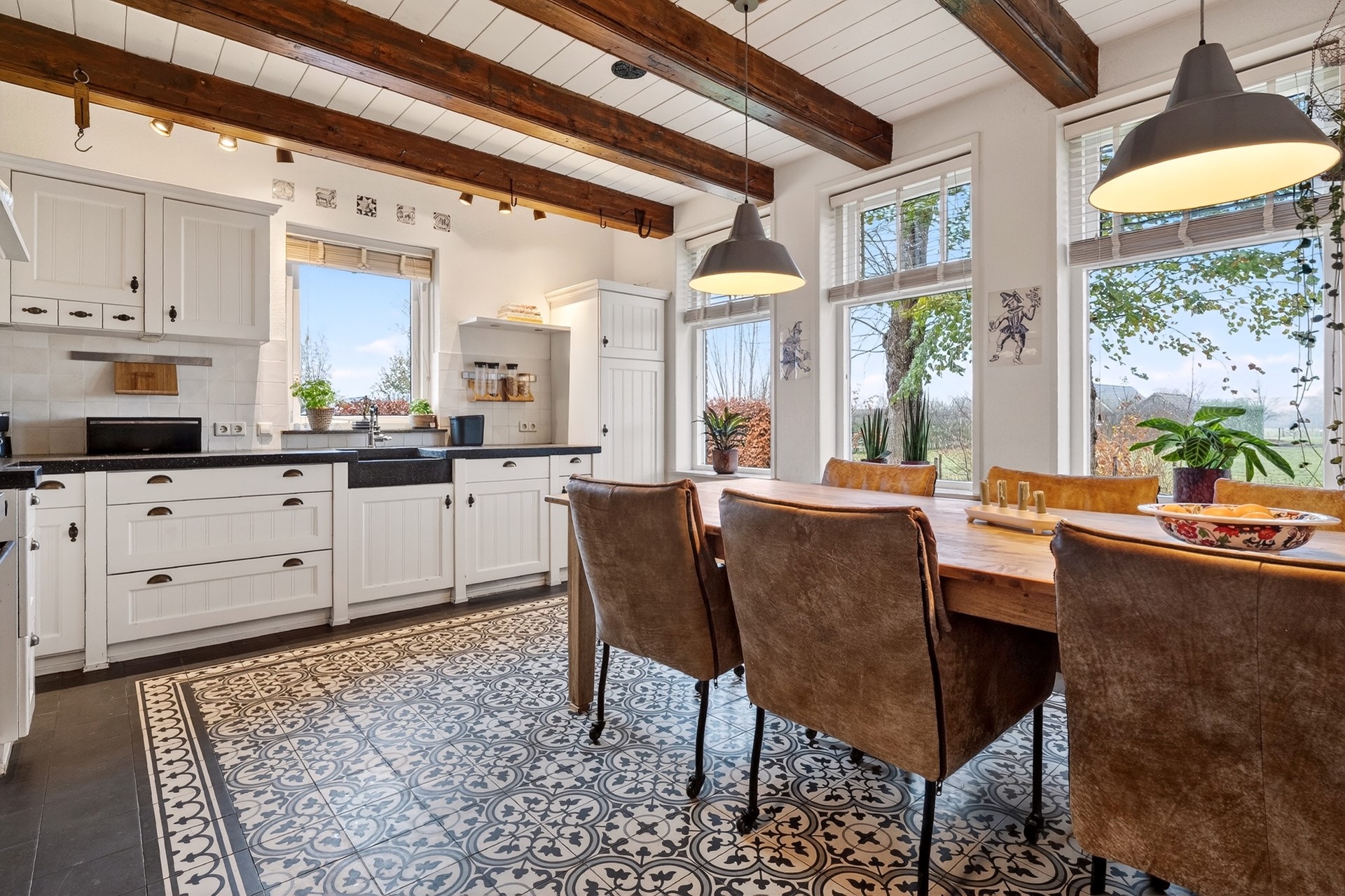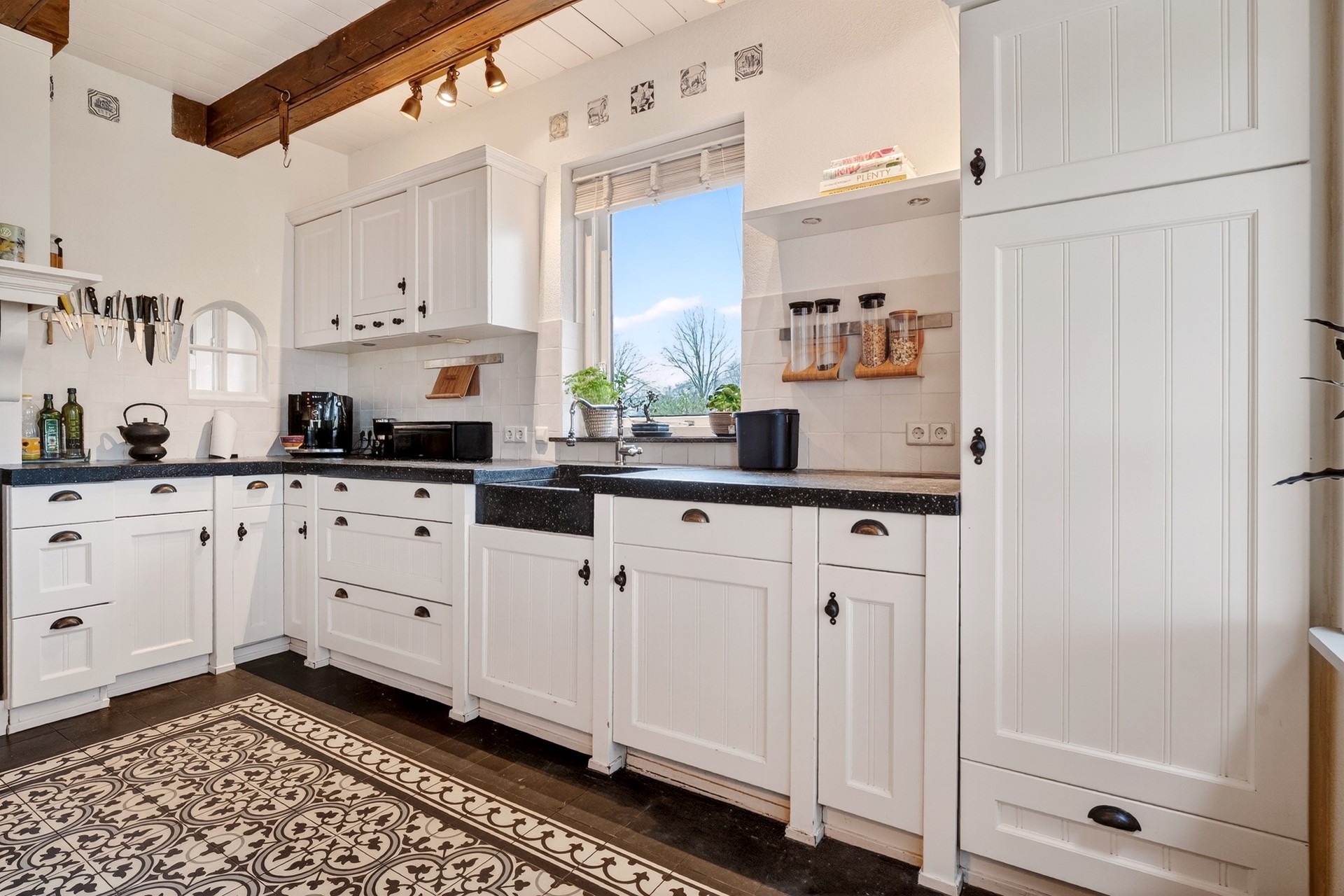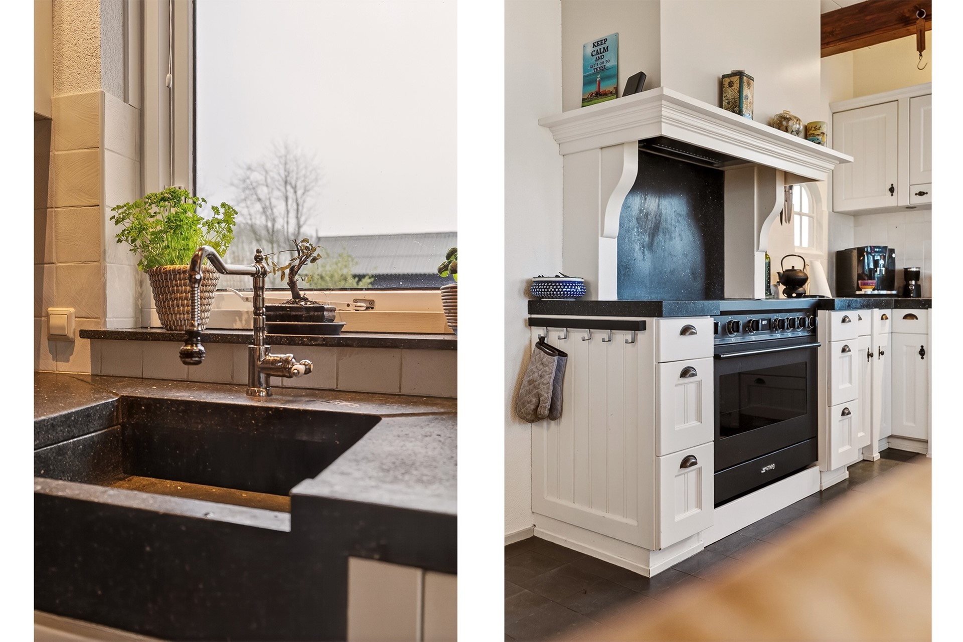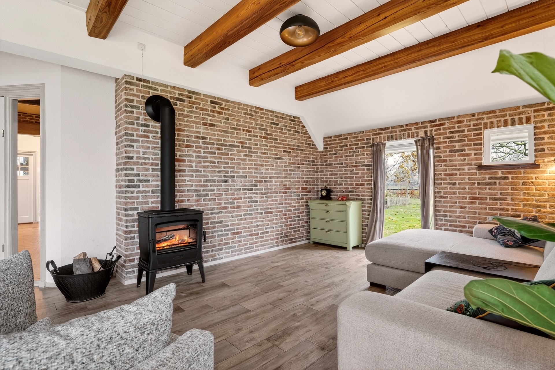 Entree/hal met meterkast, technische ruimte en toilet; Heerlijke woonkeuken met een keukenblok in landelijke stijl welke is voorien van een inductie-fornuis met elektrische oven, afzuigkap, koelkast en een vaatwasser; Praktische bijkeuken met wasmachineopstelling; Lichte woonkamer met vrij uitzicht en voorzien van een sfeervolle houtkachel; Slaapkamer van ca. 17 m²; Luxe badkamer voorzien van een douche, ligbad, toilet en een badmeubel met dubbele wastafel.