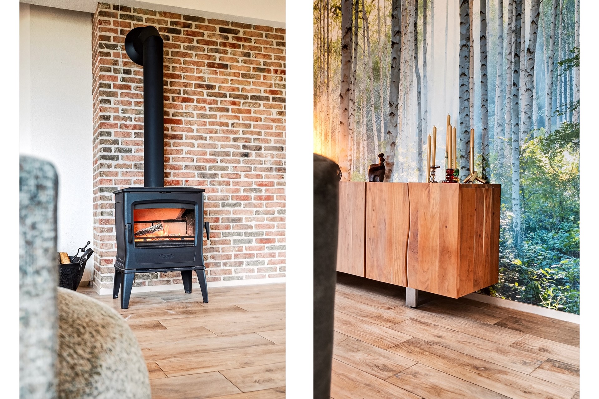 | Verwarmingssysteem | Houtkachel, Vloerverwarming (gedeeltelijk), Warmtepomp |